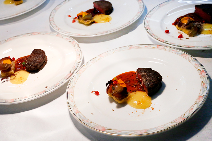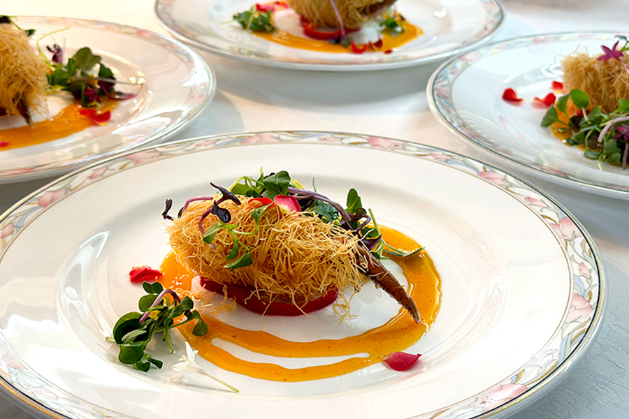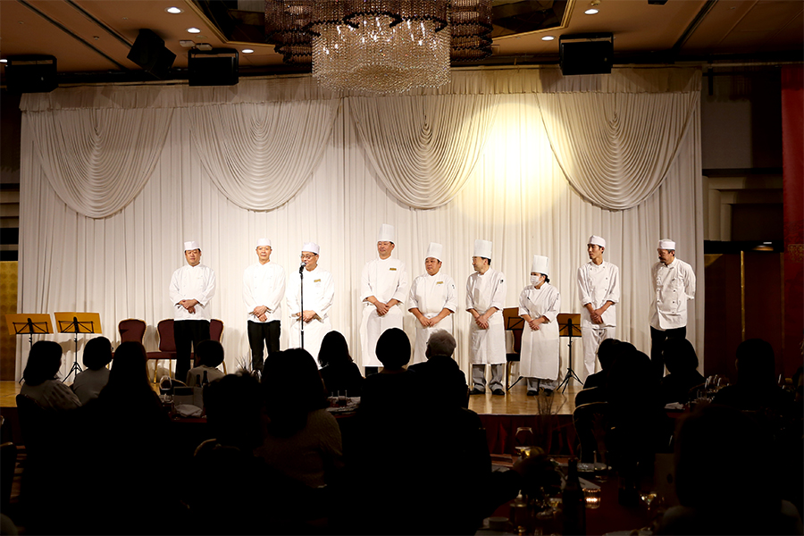 ディナーでは、重慶飯店 総料理長 陳一明による中華四川料理と、ローズホテル横浜 洋食料理長 山川俊樹によるフレンチが織りなす特別コースをご提供。東洋と西洋、ふたつの美食が響き合うこの夜は、まさに芸術と食の饗宴となりました。