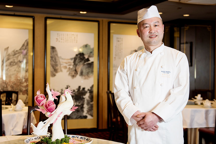 私の故郷は中国湖北省です。11年前に来日して以来重慶飯店で腕を振ってきました。湖北省は重慶市の隣にある河川や湖が多い土地で淡水魚の蒸し物や煮物が有名です。辛い料理もありますが、山椒を使わないので四川料理の文化とは少し違います。重慶飯店での経験で山椒をはじめとしたスパイスの使い方も学びました。今後は今まで使っていなかった素材や調理法、また湖北料理のテイストも加え、重慶飯店の新しい味も提案しお客様に喜んで頂きたいと思っています。