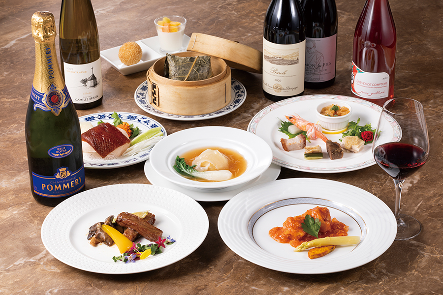 ロブスターや北京ダック、フカヒレ、和牛サーロインなど贅沢素材の名菜と、ひと品ごとにソムリエがご提案するワインをお楽しみいただくコースです。ペアリングの奥深さやおいしさをこの機会にぜひご体験ください。