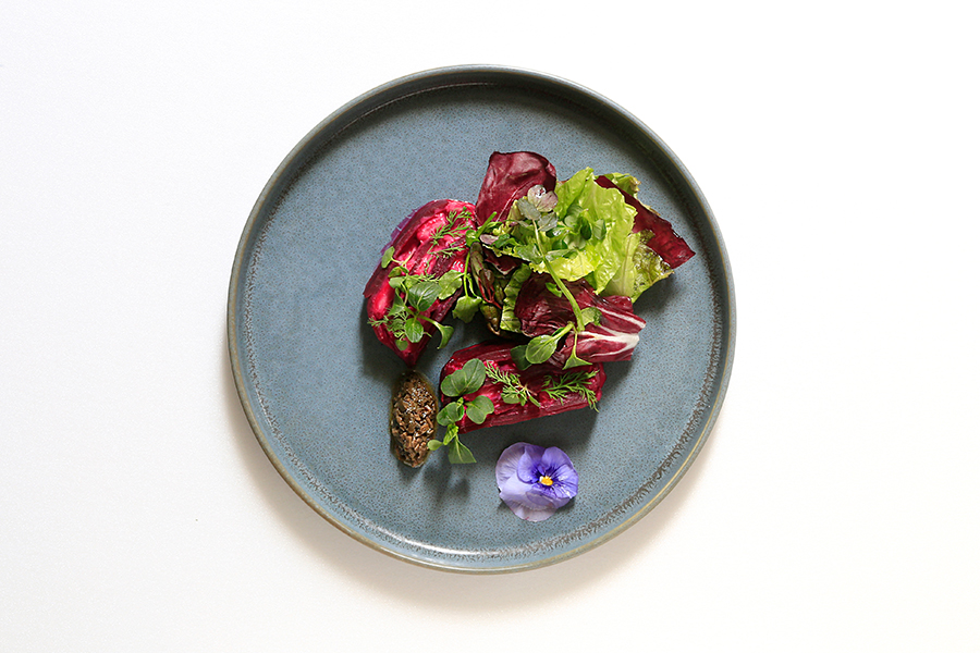 三浦産ビーツとゴートチーズのプレッセ 柚子のタップナード