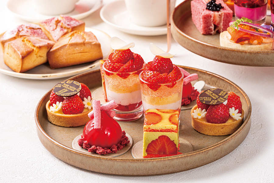 1、2月は苺をふんだんに使ったアフタヌーンティー。「苺とピスタチオのフレジェ」や「ストロベリーマカロン」、「タルトフレーズ」など、可愛らしさ満載のアフタヌーンティーをどうぞお楽しみください。