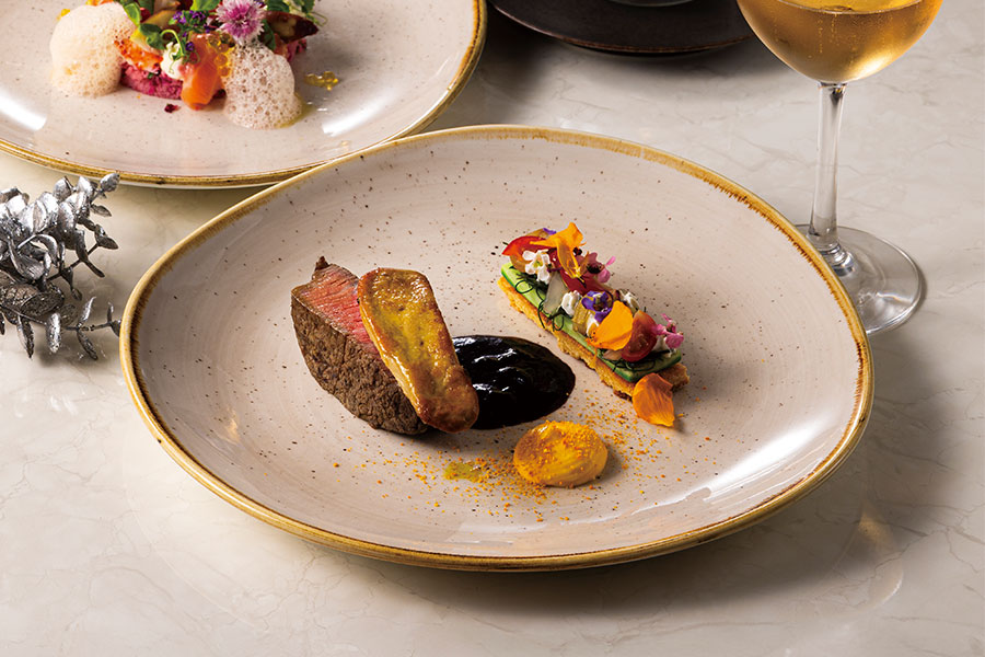 帆立やタスマニアサーモン、金目鯛、国産牛フィレとフォアグラにトリュフなど、旬と贅を尽くした全5品がお楽しみいただけます。